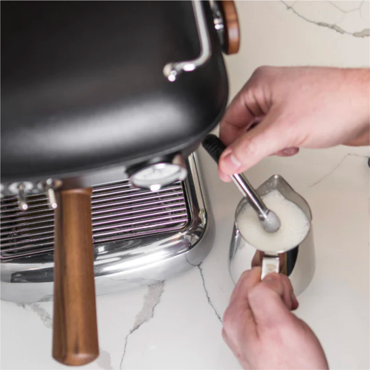 The Ascaso Dream Espresso Machine seamlessly blends retro aesthetics with modern functionality, making it perfect for creating "impulsive espresso" and swiftly transitioning to steaming milk, ideal for busy mornings. The Dream's new PID system offers advanced features including temperature and offset control, pre-infusion capabilities, power-saving modes, and the option to program single or double shots.