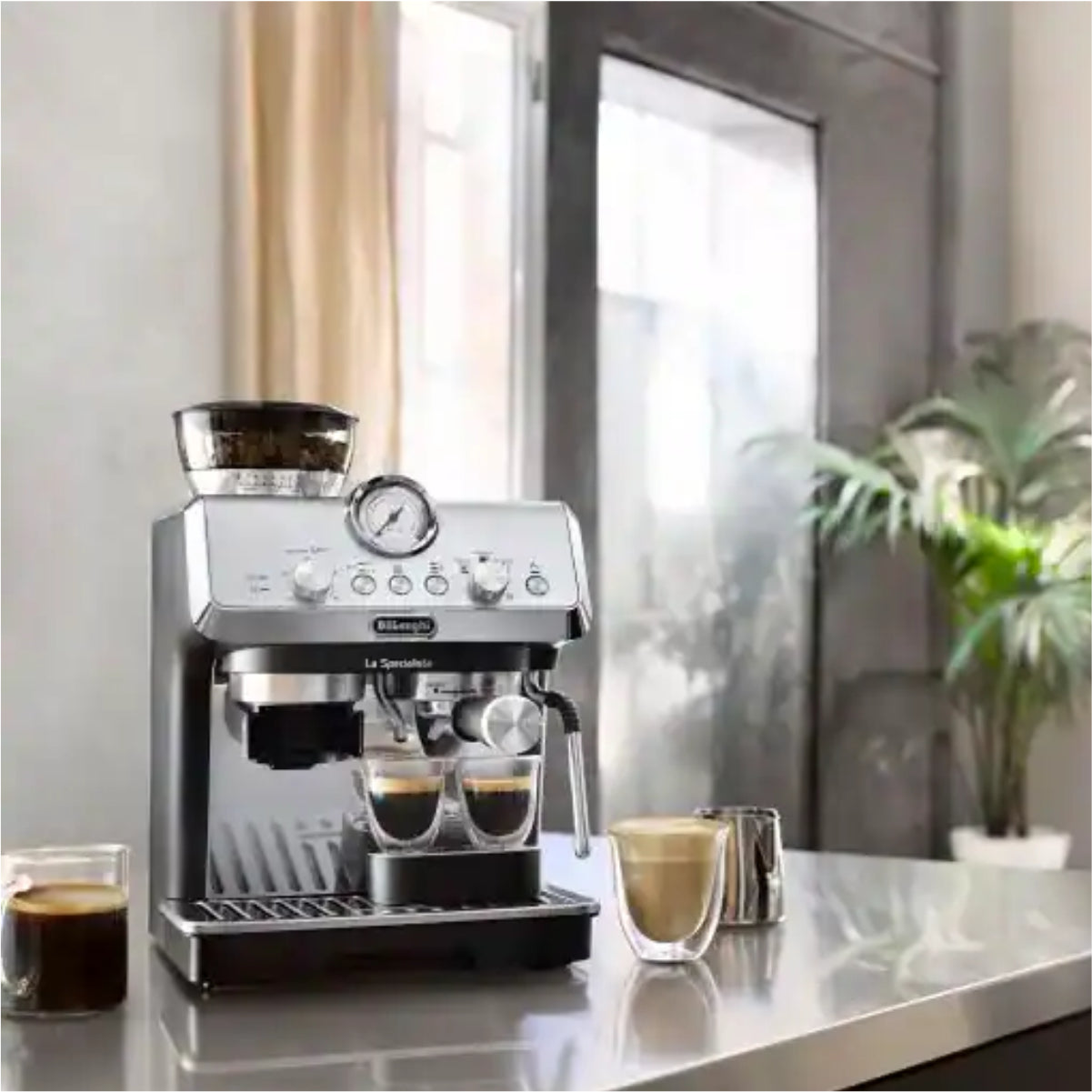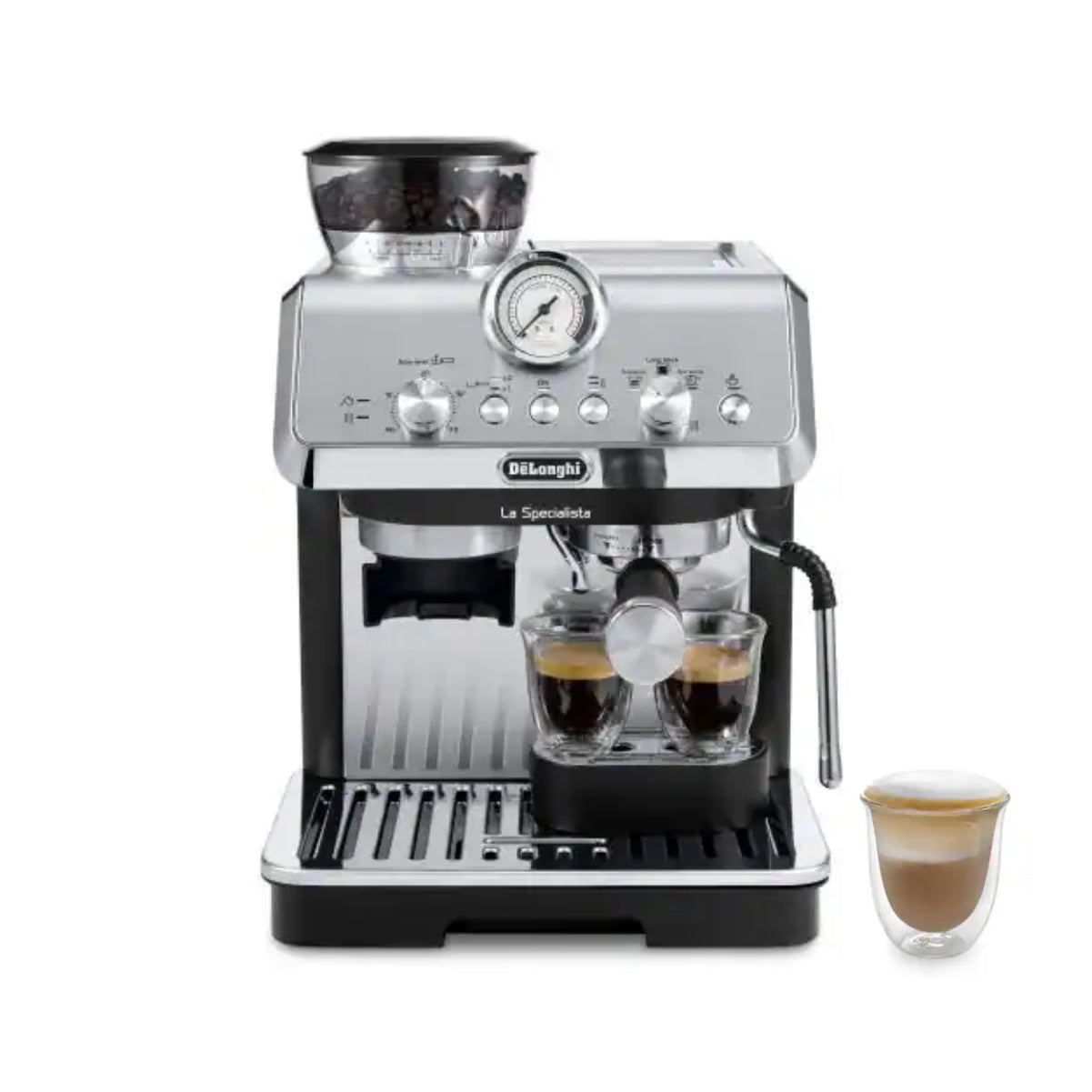 Explore the art of espresso made right, effortlessly, with the refined features of the La Specialista Arte from De'Longhi. Dial-in your coffee making thanks to its conical burr grinder boasting 8 precise grind settings. Expertly extract single or double doses with the single wall filter baskets included. Use the My LatteArt steam wand to achieve silky milk texture and add your own artistic touch to the foam.