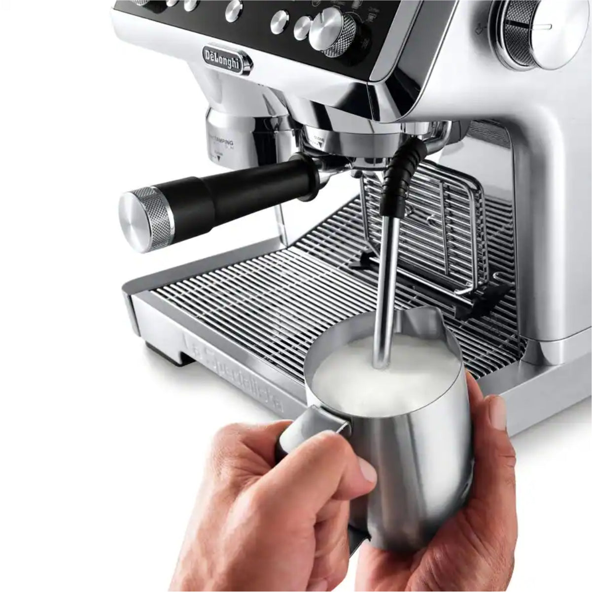 La Specialista Prestigio is an exquisitely crafted espresso machine that offers you enhanced control to consistently create exceptional espresso-based coffee drinks in the convenience of your home. With advanced features like Sensor Grinding Technology, Smart Tamping, Dynamic pre-infusion, and Active Temperature Control, the brewing process is optimized for a more personalized and efficient experience, while still preserving the hands-on creativity and fulfillment of brewing espresso the proper way. With no additional heat-up time and minimal cleanup required, La Specialista Prestigio empowers you to masterfully handcraft your espresso to perfection.