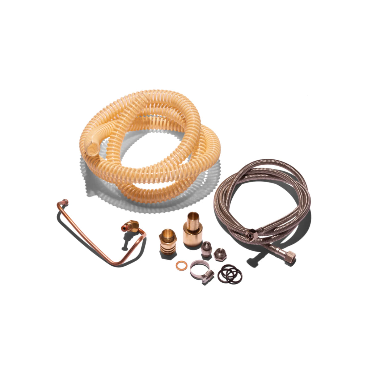 The Linea Mini Plumb-In Kit includes everything you need to convert your Linea Mini from a reservoir-fed setup to a direct water line connection. The kit comes complete with a braided stainless-steel inlet hose, a clear armored drain line for the drip tray, and all the necessary fittings and hardware for a smooth installation. Designed for convenience and reliability, this kit lets you enjoy a continuous water supply and effortless drainage—ideal for a seamless café-style experience at home.