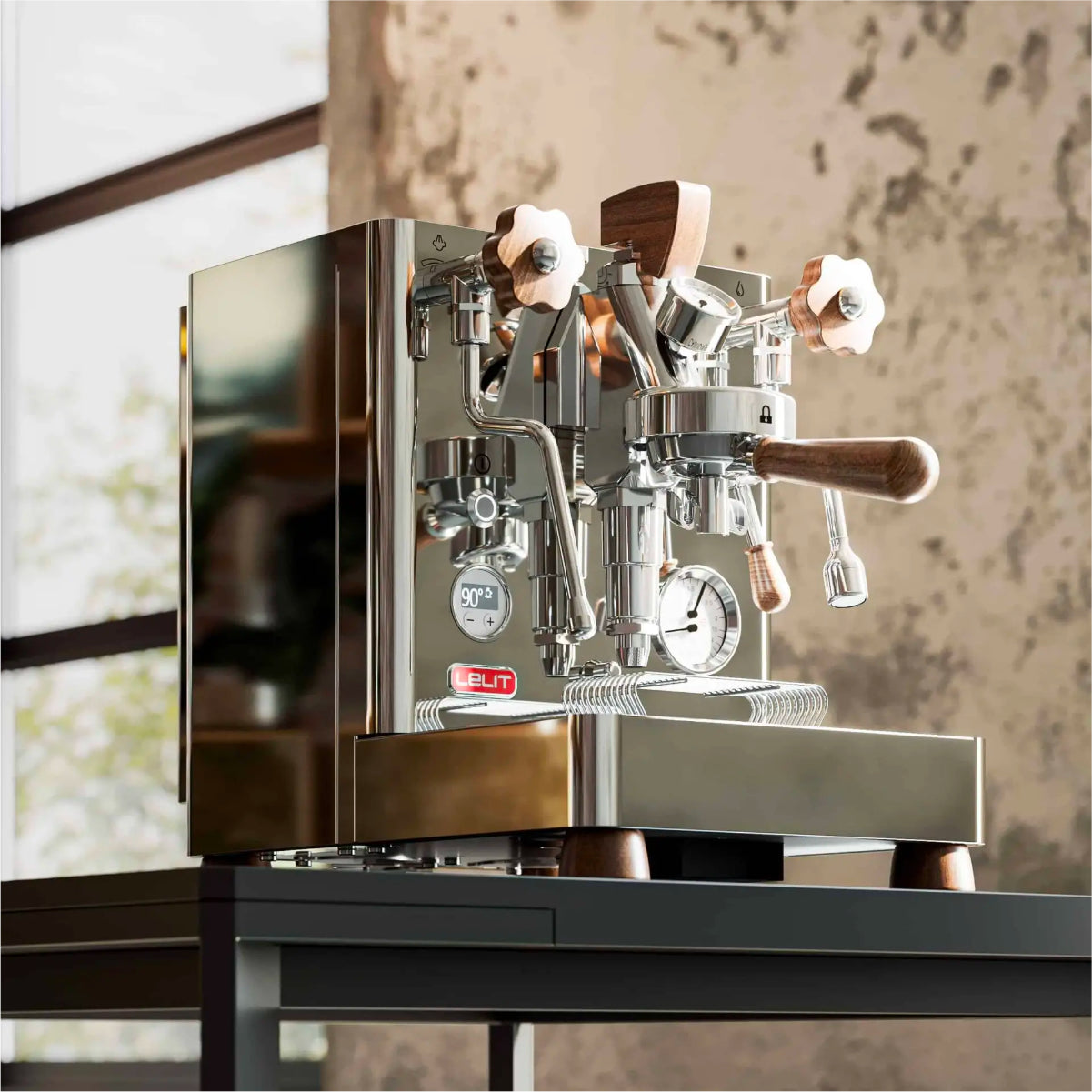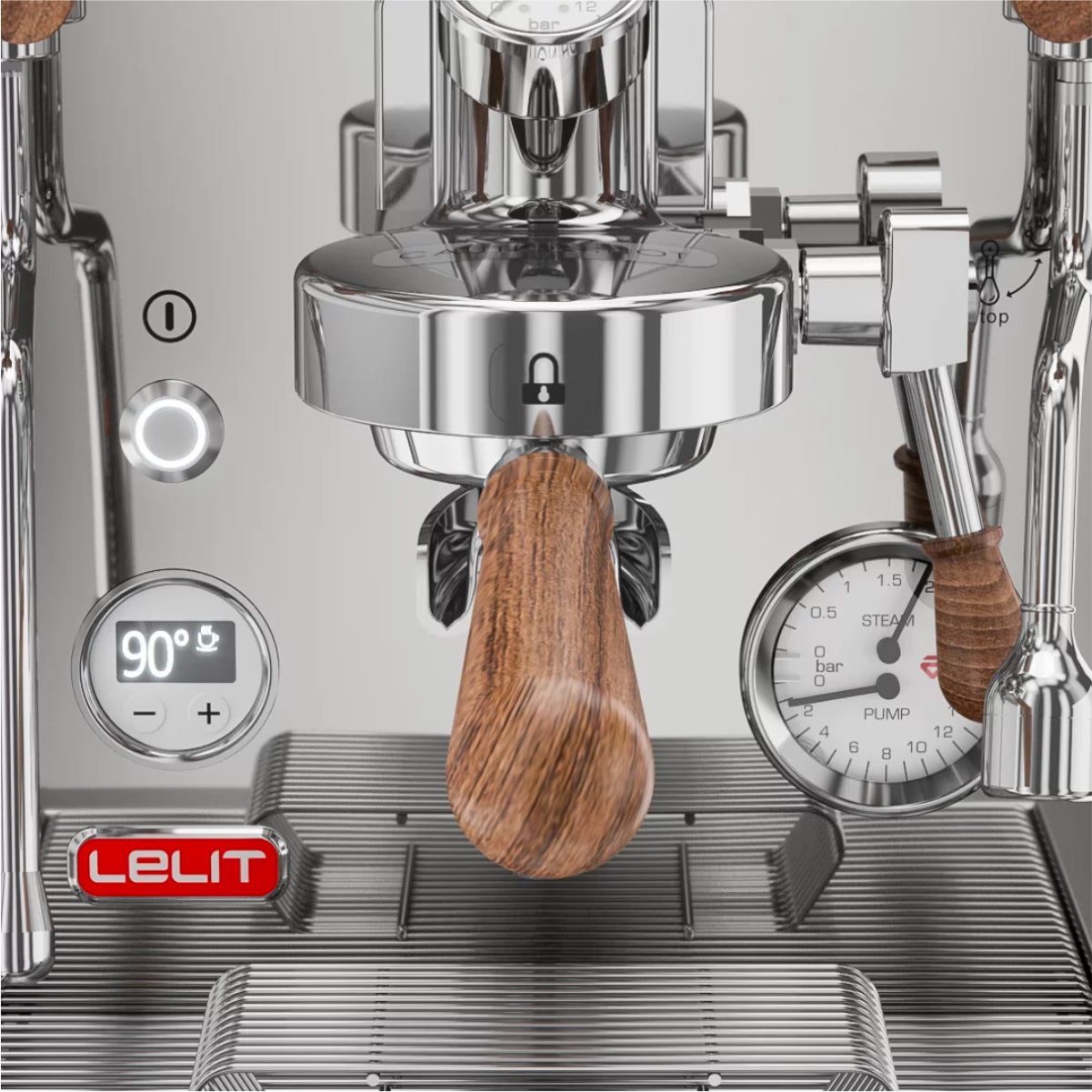 Equipped with the L58E group and a patented paddle system, this machine is compatible with LELIT58 barista tools, providing versatility and customization options. The professional water/steam taps feature spring closure for precise control. The LCC (Lelit Control Center) boasts a high-resolution OLED graphic display, offering a user-friendly interface.