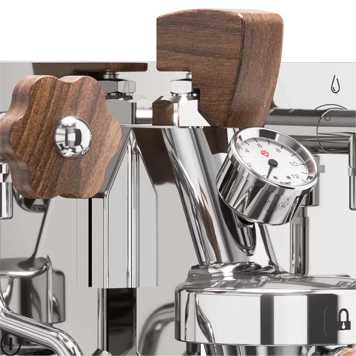 Crafted with utmost attention to quality, the machine showcases a range of high-quality materials. Paddle, knobs, adjustable feet, handles, and filter holders are crafted from exquisite walnut wood, adding a touch of elegance. The appliance body, water tank, drip tray, and wire grate are made from polished AISI 304 stainless steel, ensuring durability, easy cleaning, and a long-lasting result.