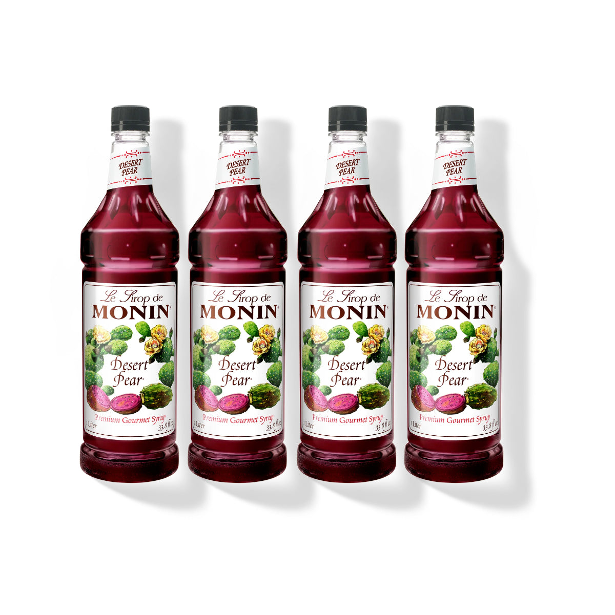 Bring a bold Southwestern touch to your drink menu with this pack of four 1-liter bottles of Monin Desert Pear Syrup.
