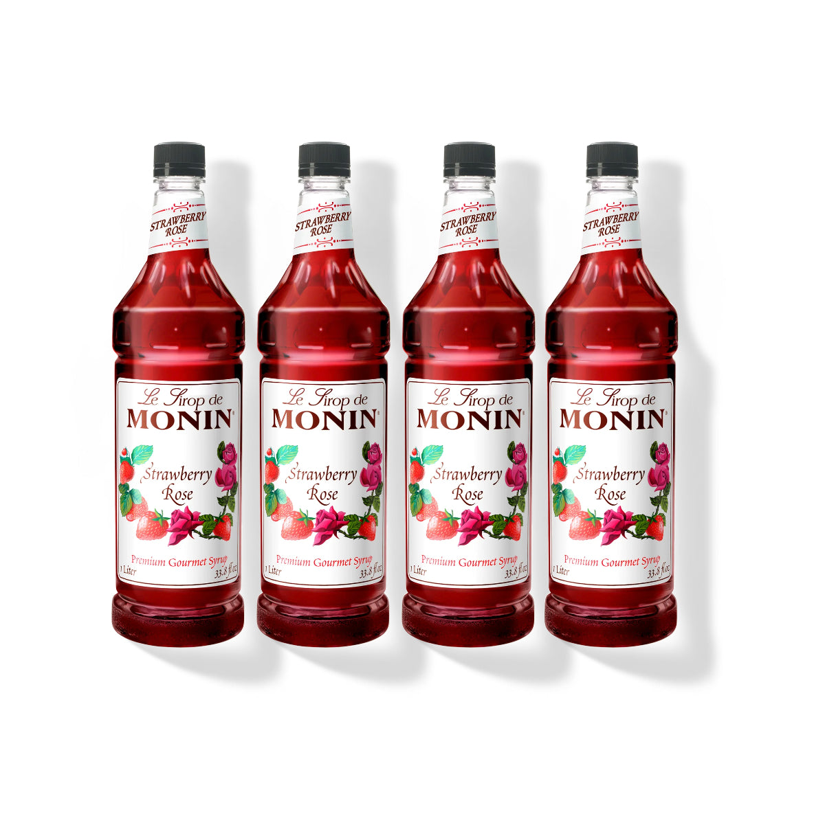 Monin Strawberry Rose Syrup 1L Plastic Bottle (Pack of 4)