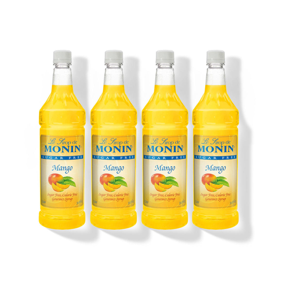 Bring a burst of island flavor to your favorite beverages with this pack of four 1-liter bottles of Monin Sugar Free Mango Syrup.