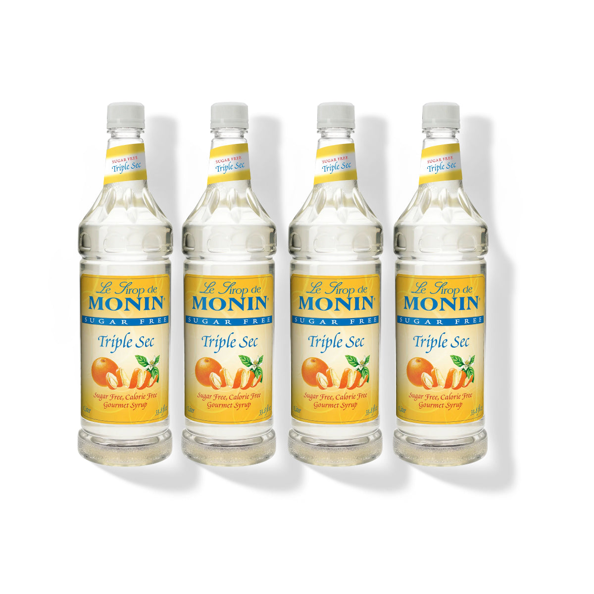 Enjoy classic citrus flavor in every sip with this pack of four 1-liter bottles of Monin Sugar Free Triple Sec Syrup.