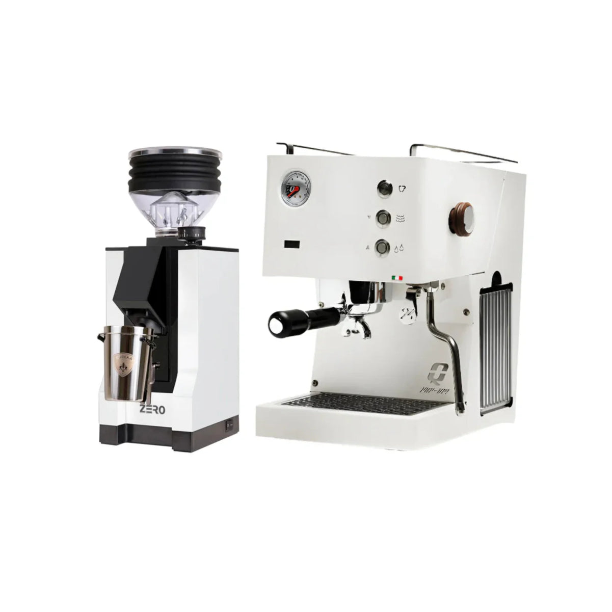 Quick Mill Pop Up Espresso Machine (White) & Eureka Mignon Zero w/Black Spout (White) - Bundle